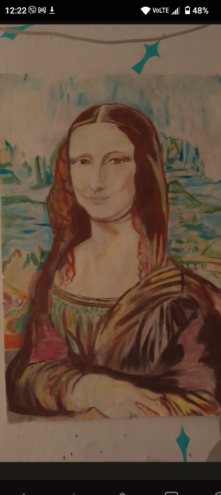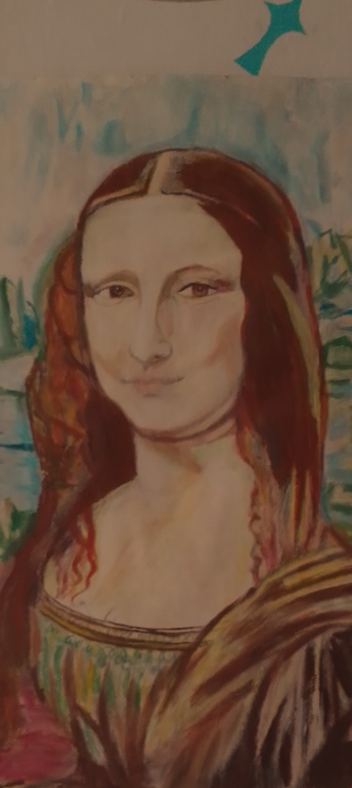Első színes ceruzás rajzom a Mona Lisáról. Kész. Sony Ericsson és Nokia telefonnal fényképezve.